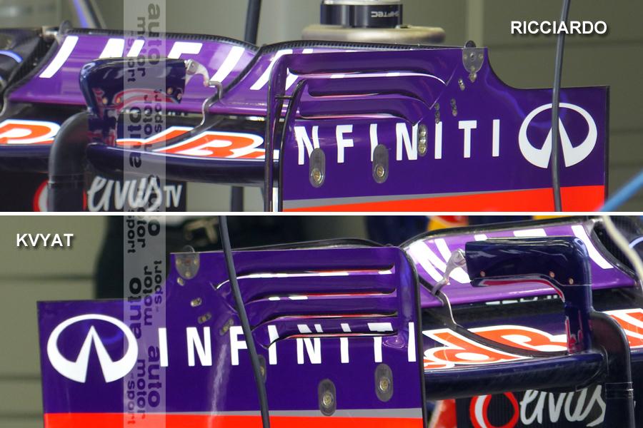 Anche al posteriore il team austriaco ha effettuato diversi esperimenti, mandando in pista Ricciardo e Kvyat con setup differenti (FOTO).