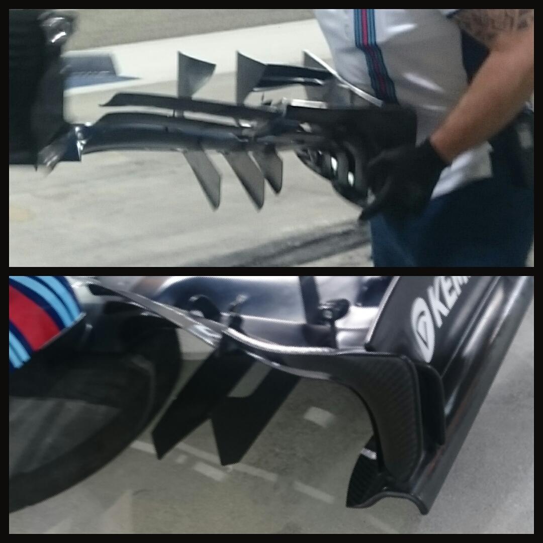 Un’altra novità interessante del weekend l’ha portata la Williams, che ha riproposto una versione di ala anteriore modificata nella parte inferiore, dotata di tre deviatori verticali (FOTO), solo brevemente provata lo scorso weekend. Nessuna traccia del nuovo cofano provato in Cina (FOTO); evidentemente le temperature del Sakir non hanno favorito l’utilizzo di questa soluzione.